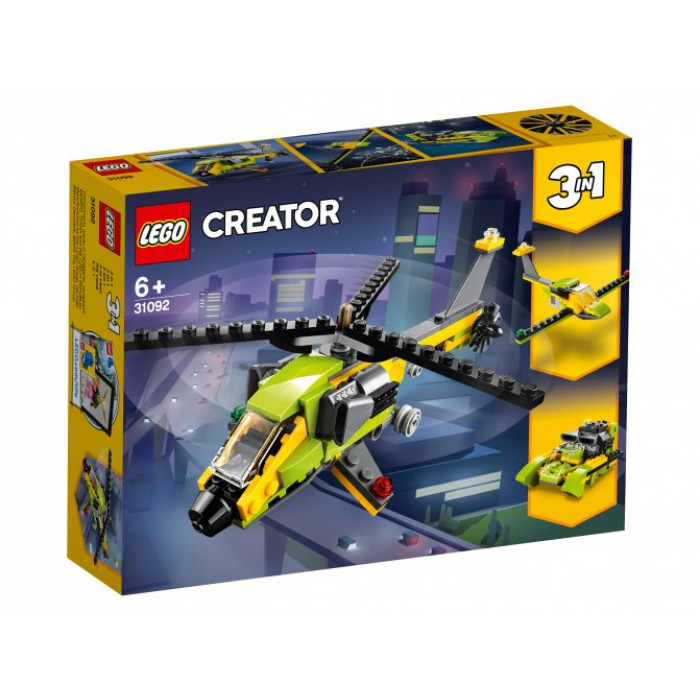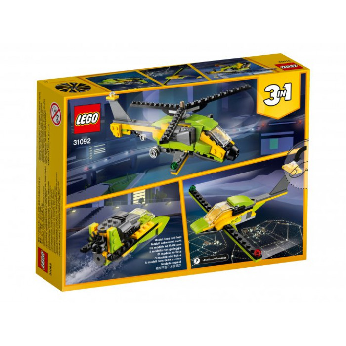 Управляй крутыми машинами из набора "Приключения на вертолете", в который входит высокотехнологичный вертолет ярко-зеленого, желтого и черного цветов с тонированной кабиной, большими двигателями и регулируемыми шасси. Приведи в движение главный ротор вертолета и взлетай!