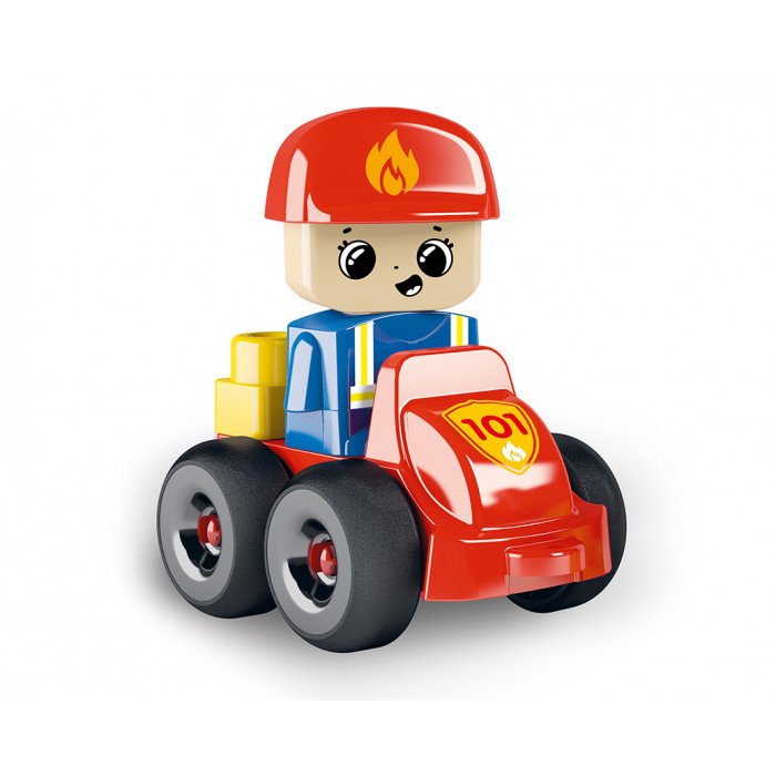 С этим набором вы можете построить настоящую пожарную часть! В буклете содержатся схемы сборки пожарной башни и арки, а также пожарной машины с лестницей. В набор также входит человечек-пожарный.