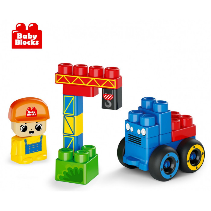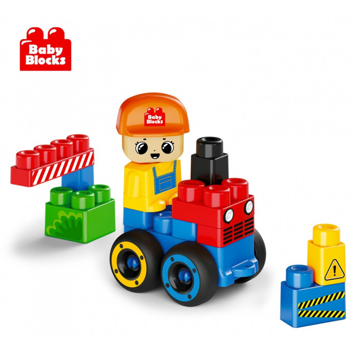 Особенность конструкторов серии Baby Blocks - гладкие крупные детали ярких цветов с универсальным креплением, из которых можно построить целый мир! Размер деталей в данном наборе - от 31X31X52 мм до 156X52X103 мм.