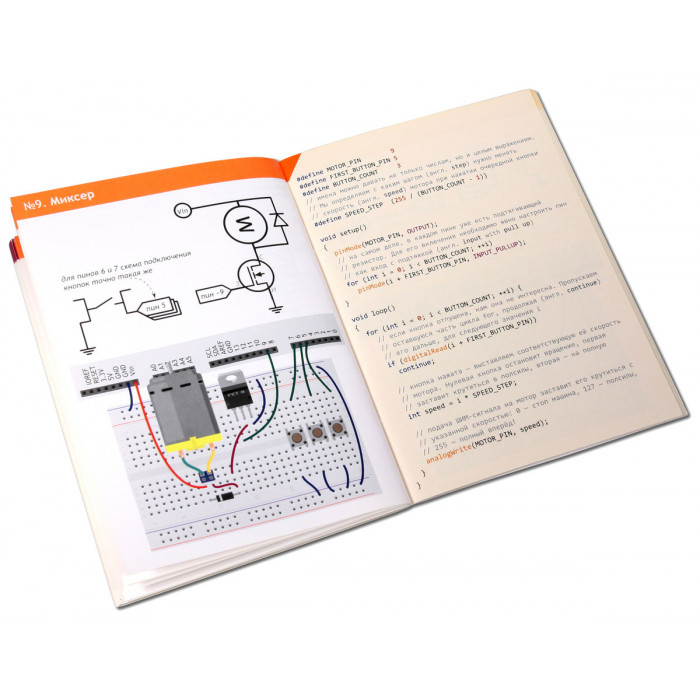 В красочном буклете приведены 20 устройств. Каждый проект сопровождается цветной схемой сборки и кодом программы с подробными комментариями.