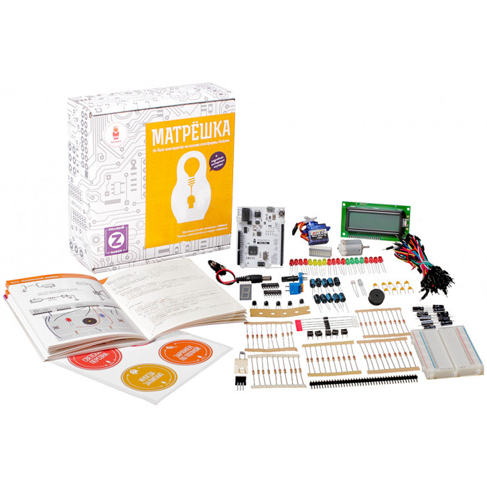 Комплектация "Матрёшка Z" содержит всё необходимое, чтобы собрать все 20 устройств. Вы можете рассмотреть комплектацию "Матрёшка Y": она дешевле, но содержит меньше деталей — из них можно собрать 17 устройств.