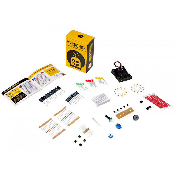 В Микронике нет занудства, нет заумной теории и сложных принципиальных схем. Всё это ребёнок успеет узнать в школе и институте. Главное — доставить ребёнку радость и заинтересовать его миром хобби-электроники.