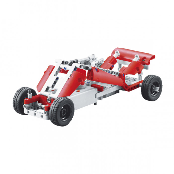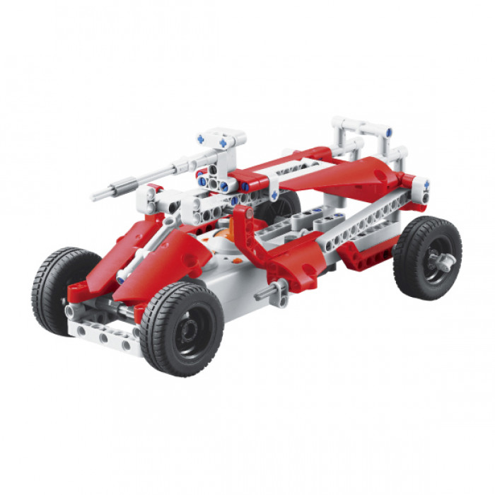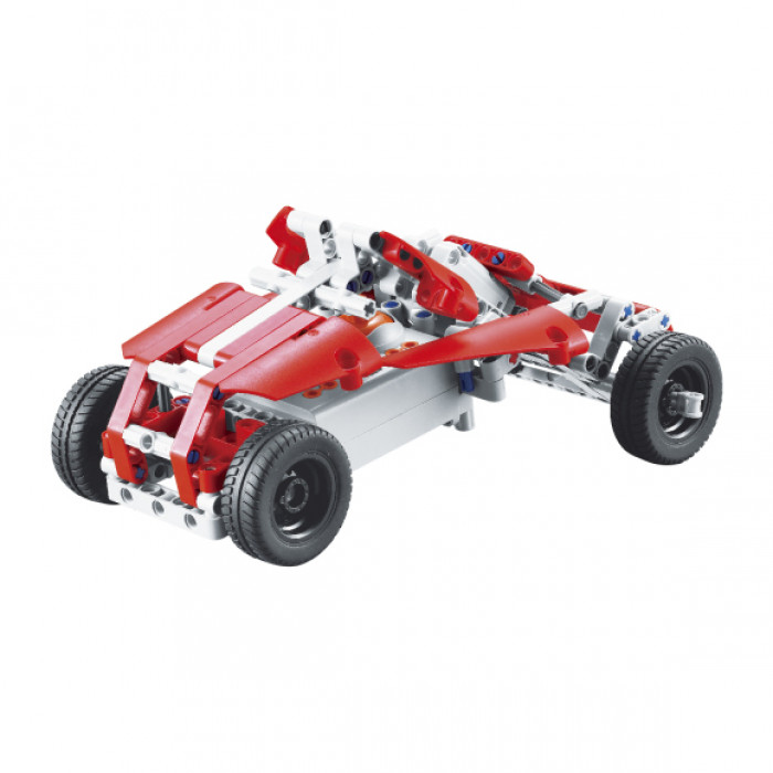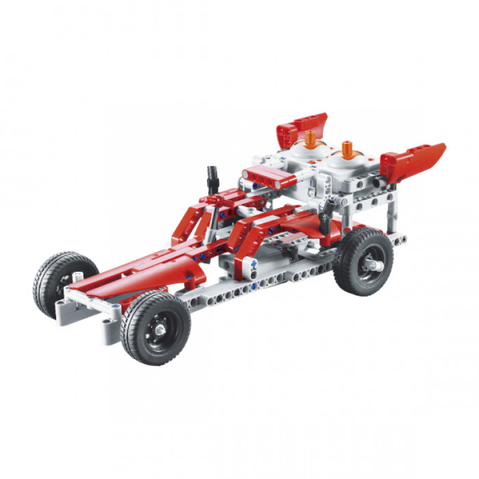 В комплект входит высокоскоростной электродвигатель (2 режима скорости) с антенной и пульт ДУ на частоте 2,4ГГц. В наборе 191 деталь, а также детальная инструкция по сборке главной модели. Дополнительные инструкции для сборки еще 9 моделей можно скачать по QR-коду с сайта поставщика.