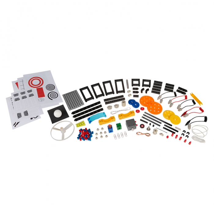 Набор включает в себя 137 деталей. Подробный перечень комплектующих приведен в инструкции. В ней также подробно описаны порядок проведения экспериментов, последовательность сборки моделей и интересные факты из истории исследований электромагнетизма.