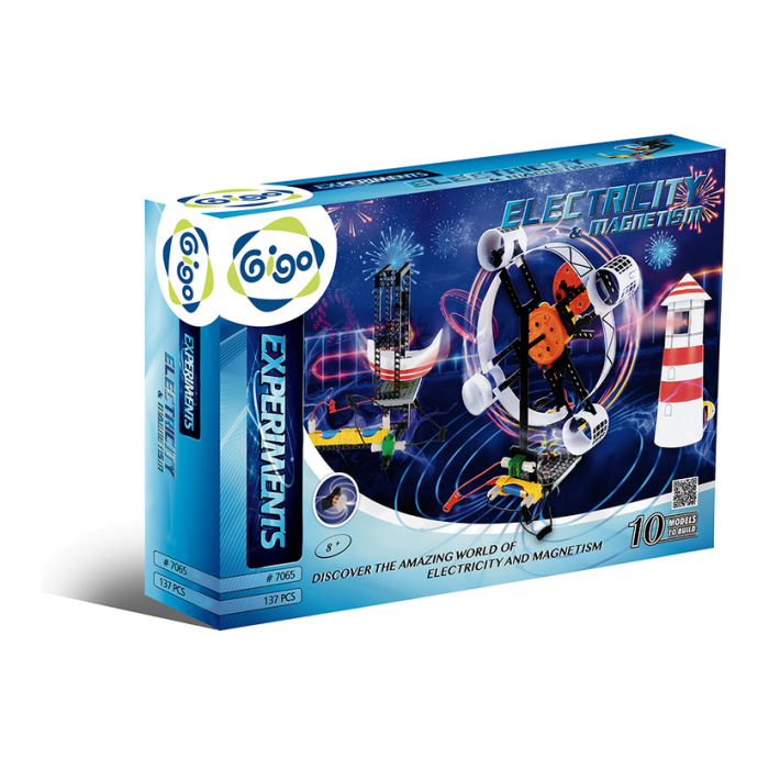 В конструкторе "Электромагнетизм" от Gigo все модели для работы используют электрическую энергию. Можно собрать 10 моделей.