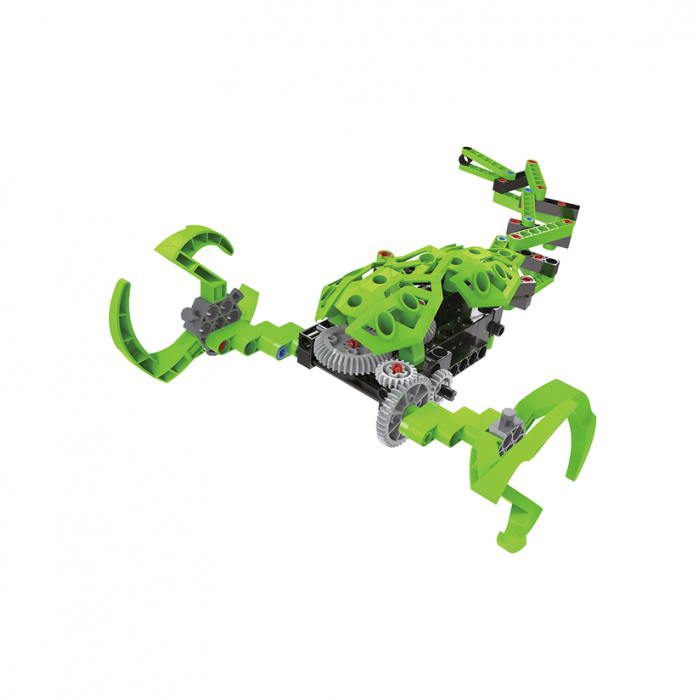 Ребенок соберет из 138 деталей 10 моделей с рептильным внешним видом. Новая разработка — коготь с различными функциями передвижения и подъема делает модели более реалистичными.