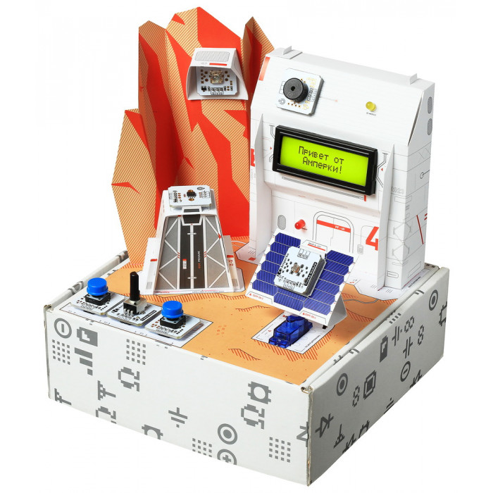 - Arduino-совместимая плата, которая производится в России. К ней прилагается несколько датчиков и светодиодов, сервопривод и дисплей. Готовые модули легко соединяются между собой без пайки и ухищрений.