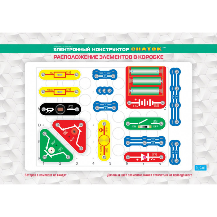 Для работы схем необходимы 3 батарейки типа АА, напряжением 1,5 V (приобретаются отдельно) .
