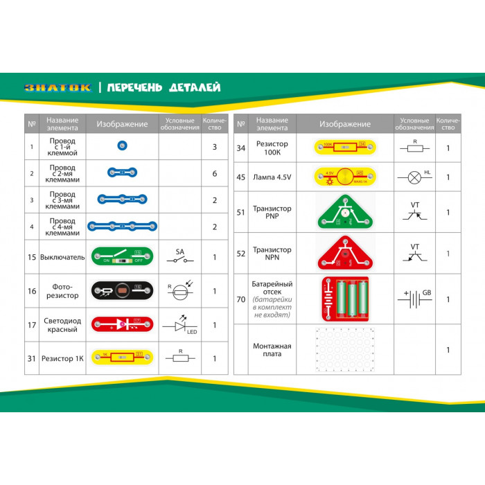 Даже без помощи взрослых, используя очень понятное цветное руководство, всего за несколько минут он или она сможет собрать и испытать схему с практически 100% положительным результатом.