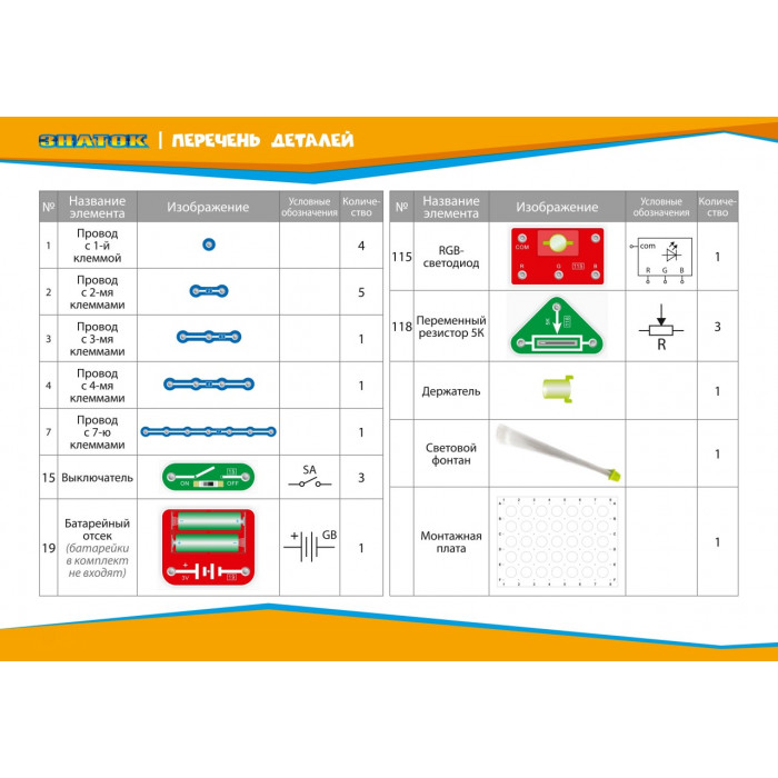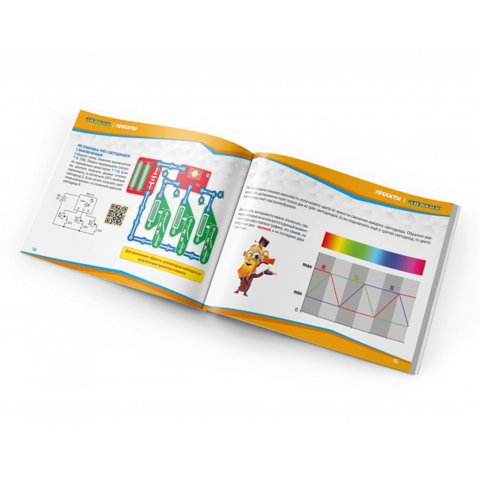 Электронный конструктор начального уровня, позволяющий ребенку понять, как работают многие "умные вещи" вокруг нас, и в частности, убедиться в том, что вся гамма цветов, которую вы видите на экранах смартфонов, мониторах компьютеров, телевизорах, рекламных щитах создается при помощи всего трех цветов — красного, зеленого и синего!