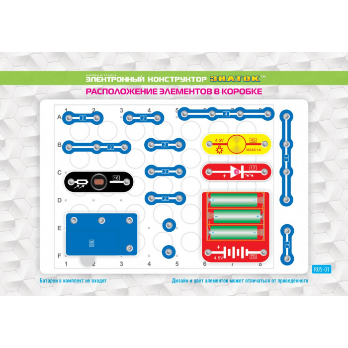 Для работы схем необходимы 3 батарейки типа АА, напряжением 1,5 V (приобретаются отдельно) .