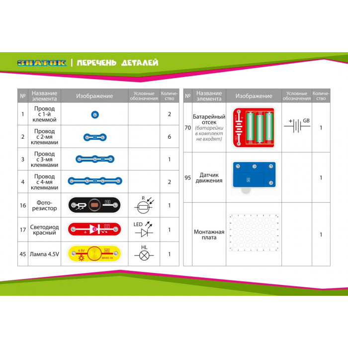 Детали, необходимые для выполнения предложенных в руководстве проектов