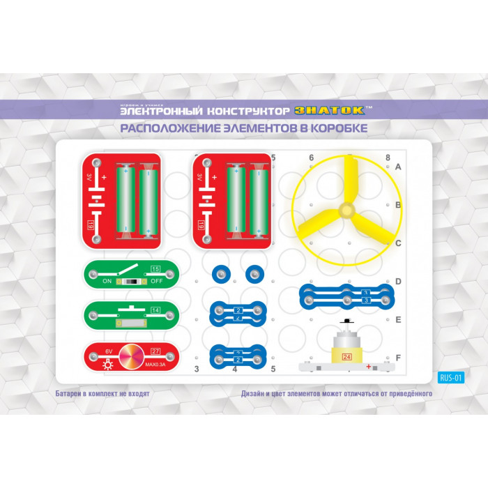 Для работы схем необходимы 3 батарейки типа АА, напряжением 1,5 V (приобретаются отдельно) .