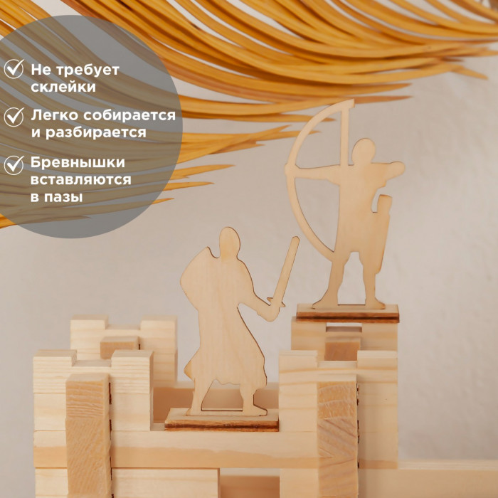 Деревянная конструктор "Замок" придется по душе юным любителям средневековья, рыцарей и королей. Из аккуратных деревянных брусочков ребенок смастерит чудесный замок, а потом сможет разыграть там захватывающую битву, устроить рыцарский турнир или организовать "операцию по спасению" прекрасной принцессы от страшного чудища.