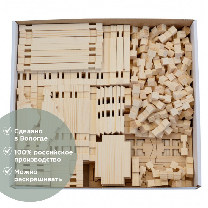 Еще одно важное достоинство деревянных конструкторов "Лесовичок" — они совместимы друг с другом. Совместное использование нескольких конструкторов разных серий позволит создавать роскошные имения и целые поселения.