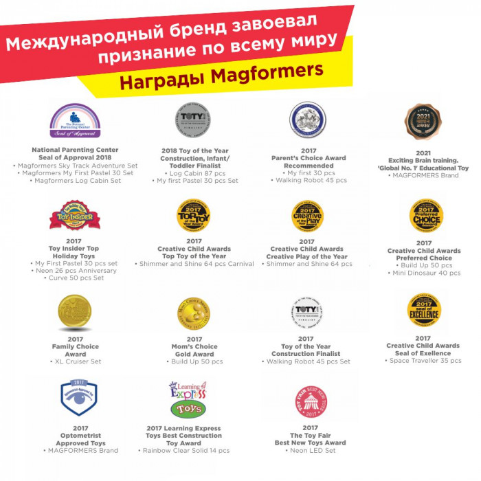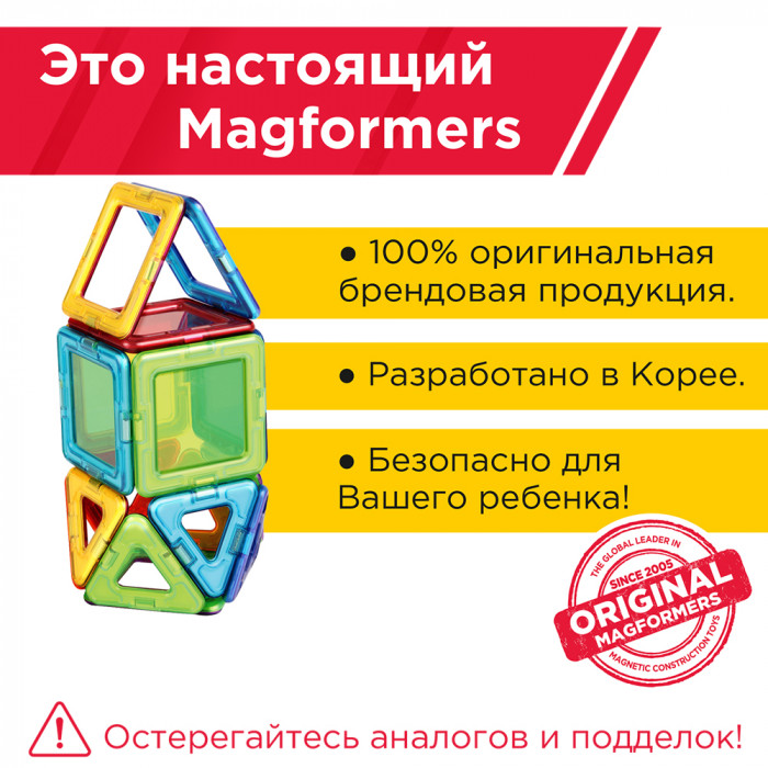 Внимание! Наборы Магформерс предназначены для детей старше 3-х лет. Дети меньшего возраста тоже могут играть конструкторами Магформерс, но только под присмотром родителей!