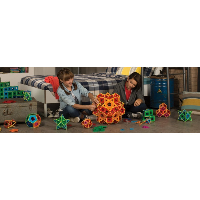 Детали легко соединяются под любым углом и в любом направлении. Из них можно смастерить как классические геометрические фигуры, так и фантазийные постройки.