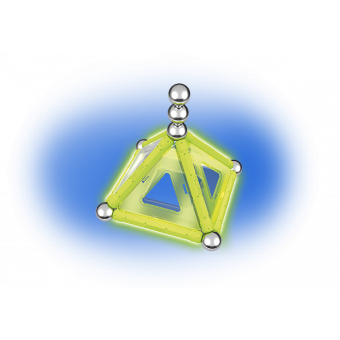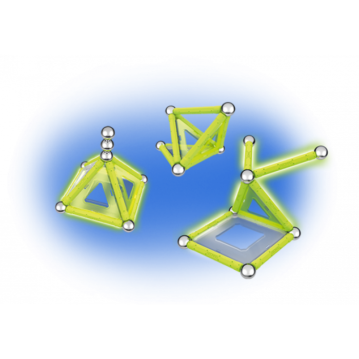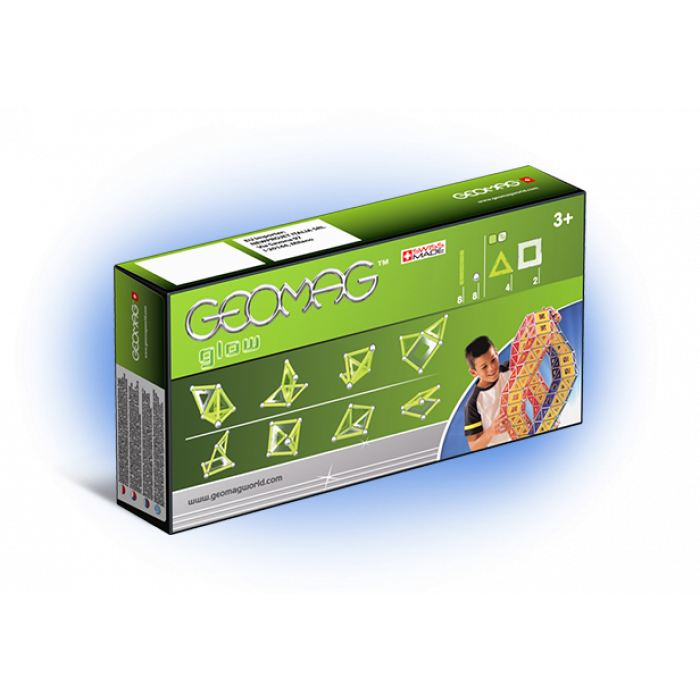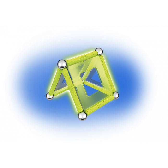Светящийся магнитный конструктор серии Glow. В комплекте 22 детали (стержни, шарики и пластиковые панели). Стержни светятся в темноте, превращая игру с GEOMAG в волшебство.