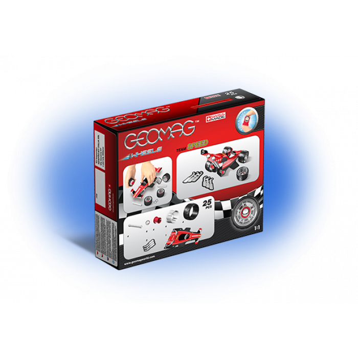 Набор серии GEOMAG Wheels — это магнитный конструктор, из которого ваш озорник построит собственный автомобиль. В основе конструкции, как всегда, магнитные стержни и металлические шарики. Помимо них, в набор входят колеса с прорезиненными шинами и гибкий корпус автомобиля. Конструктор можно моментально разобрать, а затем снова собрать. Отлично комбинируется с другими наборами бренда.