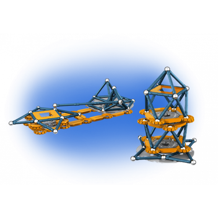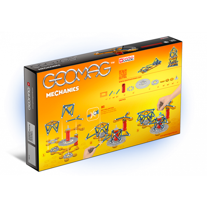 Магнитный конструктор серии GEOMAG Mechanics раскроет силу магнетизма в движении. В комплекте 146 деталей. Помимо классических стержней и шариков, серия Mechanics содержит механические элементы. Части конструктора способны вращаться и вызывать цепные реакции под воздействием магнитного притяжения.