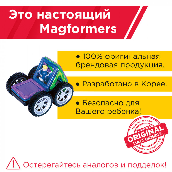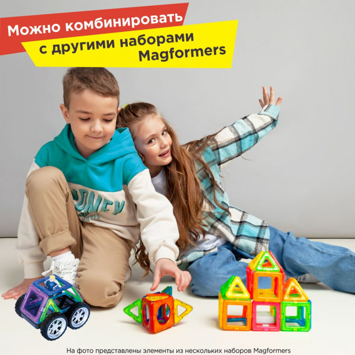 Магформерс — это развивающий магнитный конструктор нового поколения. Магнитные детали разнообразных геометрических форм складываются в самые невероятные модели: башни и роботы, животные и автомобили — Магформерс развивает интеллект и воображение ребенка.