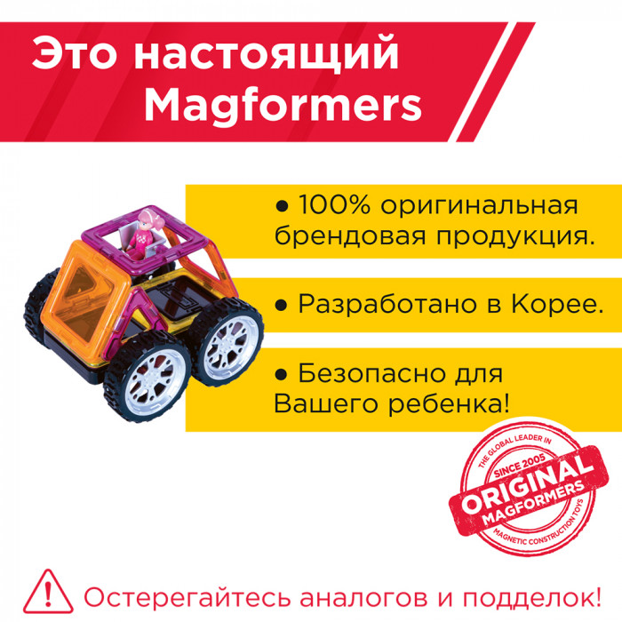 Magformers — это тот самый, первый и оригинальный, конструктор из магнитных треугольников и квадратов. Он был изобретен в США еще в 2005 году. Сегодня настоящий Magformers проектируется в Южной Корее и популярен по всему миру.