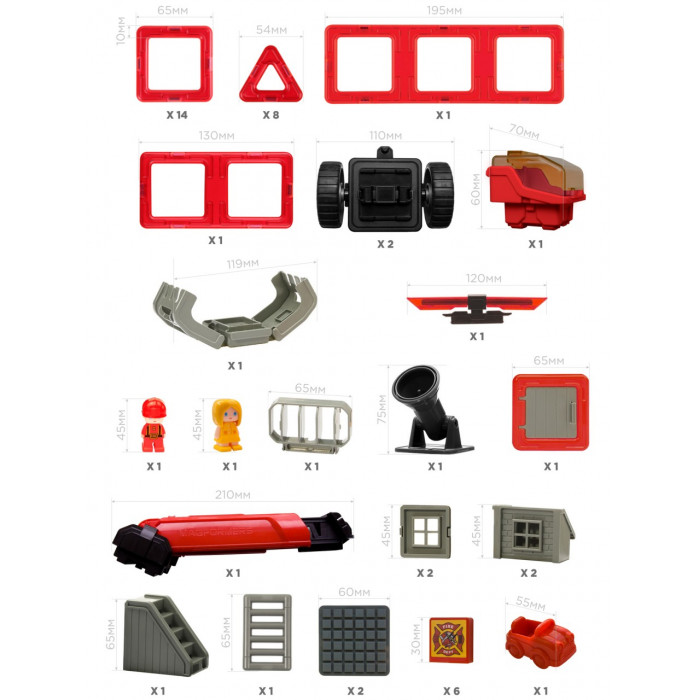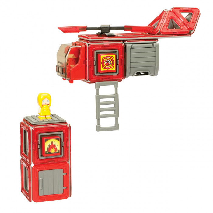 В набор Amazing Rescue Set, помимо базовых магнитных деталей, входят оригинальные тематические аксессуары, позволяющие собрать 20 разнообразных моделей зданий и сооружений , пожарных автомобилей, а также водного и воздушного служебного транспорта.