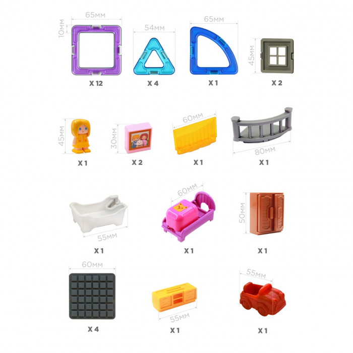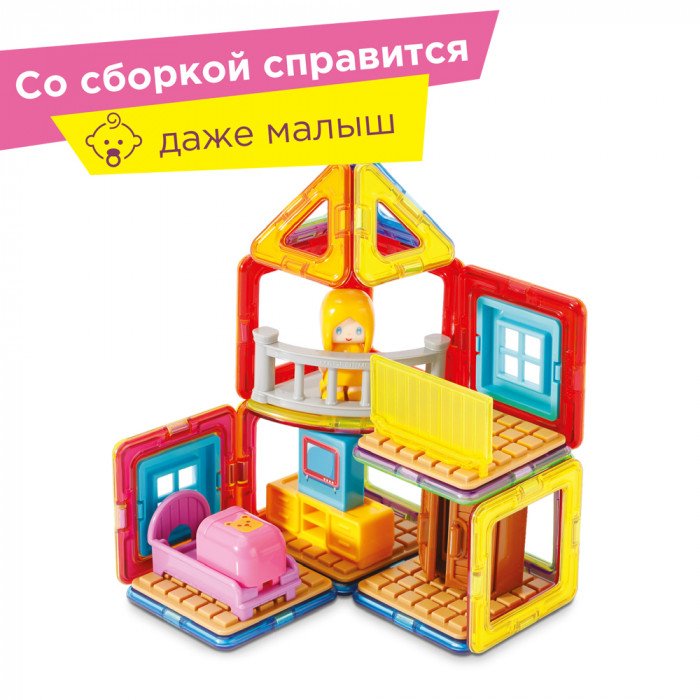 Фигурка девочки, мебель и даже малыш-автомобиль выполнены из прочного, качественного пластика. Они отлично комбинируются с магнитными элементами конструктора и подарят вашему ребенку часы увлекательного развивающего досуга.