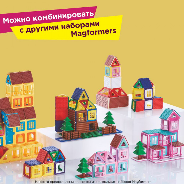 Все элементы набора, включая строительные аксессуары, полностью совместимы со всеми остальными конструкторами Магформерс, так что вы можете воспользоваться уже имеющимися у вас деталями в качестве дополнительных строительных элементов.