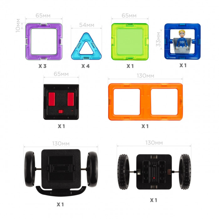 Magformers R/C Kart Set — самый компактный набор Магформерс с пультом дистанционного управления. В комплект также входит эксклюзивная фигурка мальчика-гонщика.