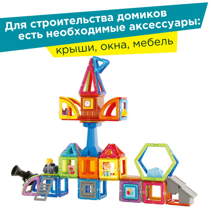 Постройте парк развлечений своей мечты! Постройки в Книге идей расположены по категориям сложности. С ней ваш ребенок легко освоит принципы конструирования "Магформерс" и раскроет свой творческий потенциал.