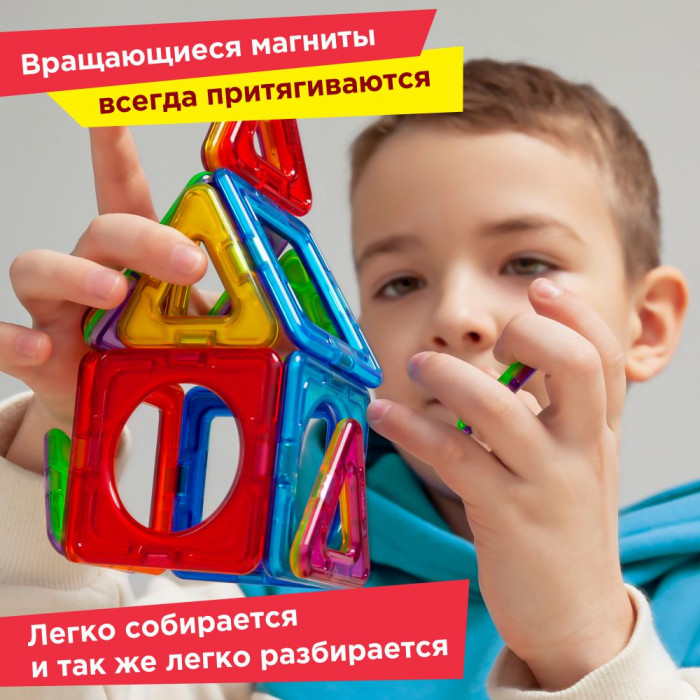 - Легкость сборки, простота уборки. Магнитные конструкторы Magformers заслужили любовь малышей: всего одно прикосновение, и детали соединены друг с другом. Вот почему их легко и быстро можно собрать, а потом убрать. Удовольствие для мам!