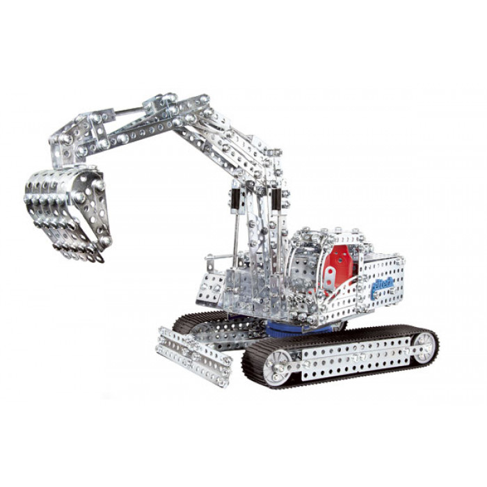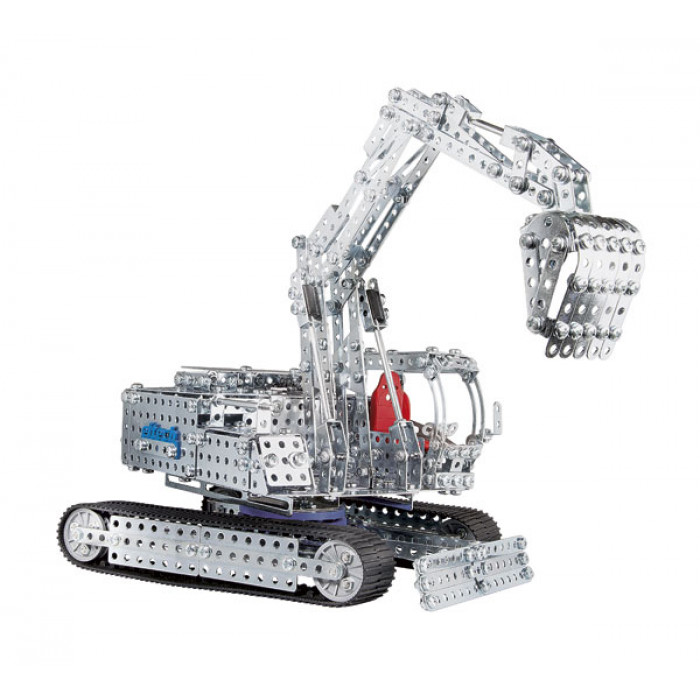 Этот металлический конструктор из серии Deluxe содержит более 1470 деталей, включая шариковые опоры и высококачественные резиновые гусеницы. Проиллюстрированная инструкция (идет в наборе) позволит собрать модель гусеничного экскаватора со множеством механических функций, например с поворотной частью на шариковых опорах.