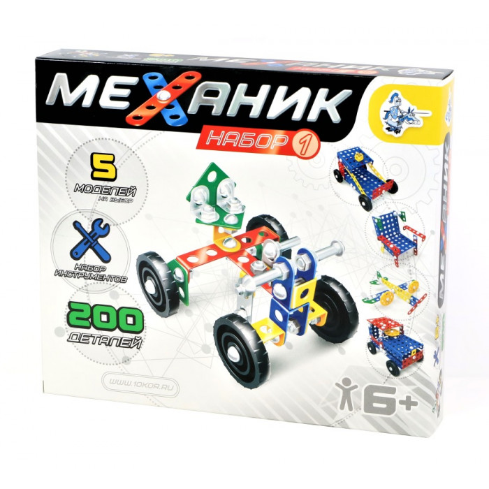 Металлический конструктор "Механик-1" рекомендуется детям старше 6 лет, способствует развитию логики воображения и конструкторских способностей.