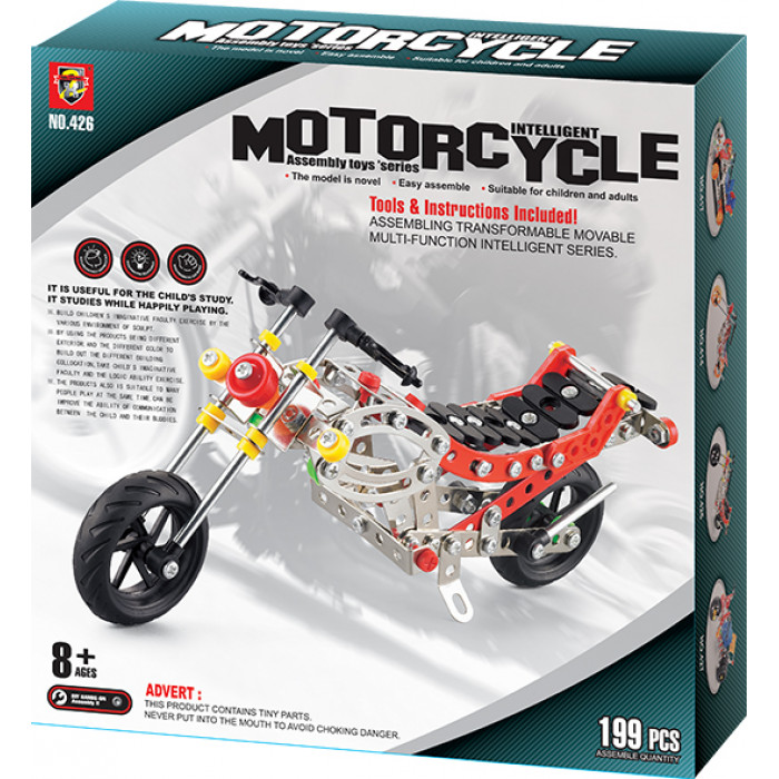 Металлический конструктор "Мотоцикл", 199 деталей, 8+