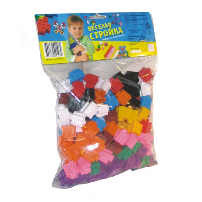 Конструктор "Веселая стройка" это объемная мозаика, игра с которой задействует фантазию, умение проектировать фигуры.