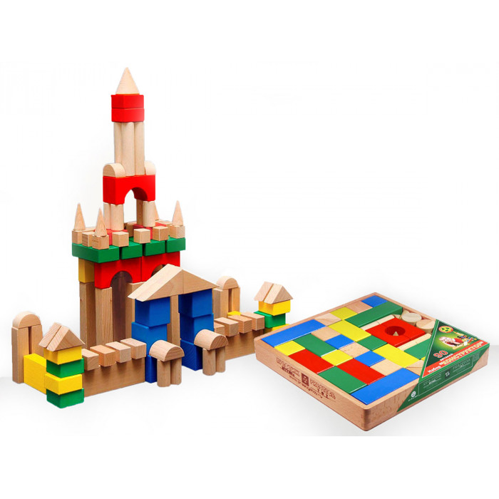 Деревянный настольный конструктор цветной, 90 деталей, 3+