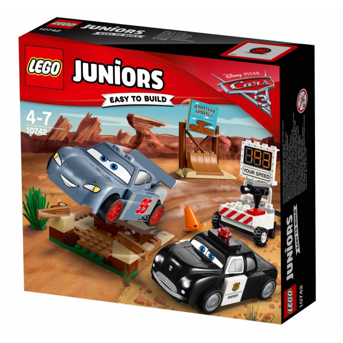 Установи новый предел скорости с Молнией МакКуином от Disney® Pixar во время тренировки на гоночном полигоне Вилли Бутта. Доставь Шерифа на место и с помощью радара определи время победителя, когда тот промчится мимо, собьёт указатель Радиатор Спрингс и прорвётся через заграждение. Это новый рекорд! Но сможет ли Молния МакКуин побить его ещё раз?