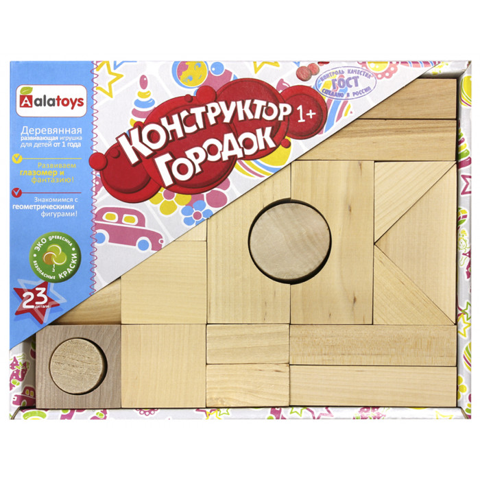 Конструктор ALATOYS К1600 Конструктор "Городок" неокрашенный 23 детали