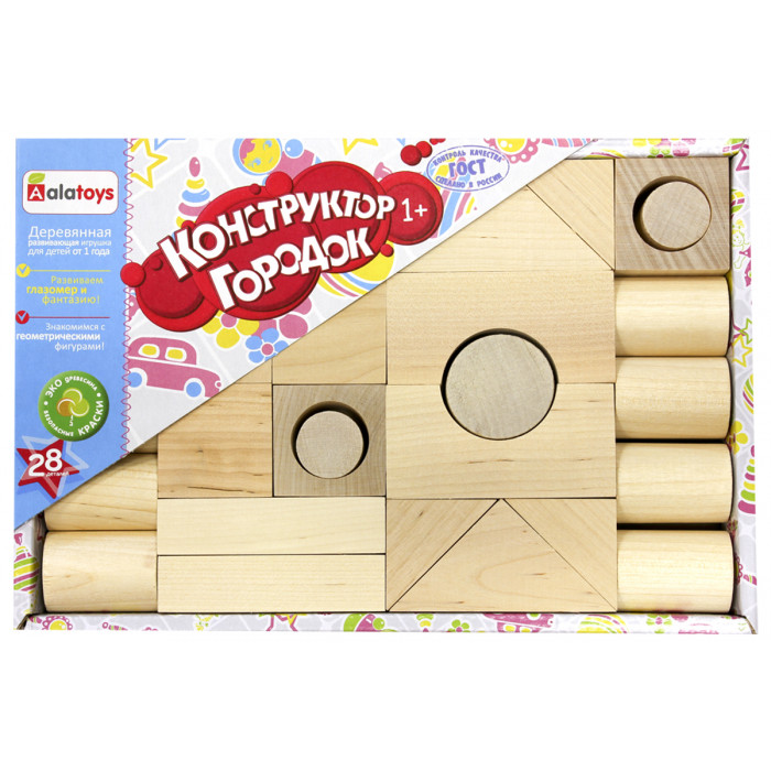 Конструктор ALATOYS К2100 Конструктор "Городок" неокрашенный 28 деталей