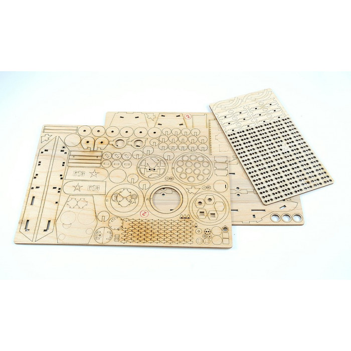 Компания Леммо представляет модель популярного во всем мире Танка Т-34-85, который составлял основу танковых войск Советской Армии и использовался в Великой Отечественной войне. Кроме того, Т-34 - это абсолютный хит у поклонников игры про танки У собранного танка вращаются гусеницы, крутится башня и поднимается дуло. Обращаем ваше внимание на то, что абсолютно все детали игрушки выполнены из дерева, гусеницы собираются из множества мелких перемычек, поэтому гусеничная техника лучше ездит по ковровым покрытиям или по поверхностям с небольшой шероховатостью. Такой конструктор как Танк Т-34 от Леммо порадует не только детей, но и взрослых, а также любителей моделизма. С этим набором у вашего ребенка появится прекрасная возможность самому собрать мини-модель знаменитого танка Т-34, а также же ознакомиться с исторической справкой об этом танке. Это один из самых больших конструкторов по количеству деталей. При этом в наборе преобладают мелкие элементы, поэтому рекомендованны