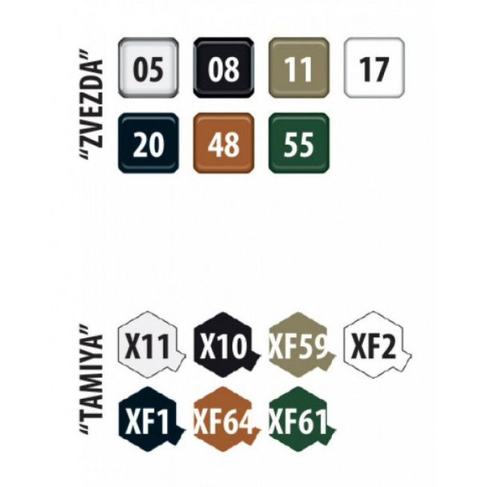 Модель собирается при помощи специального клея, выпускаемого предприятием "Звезда". Клей и краски продаются отдельно от набора.