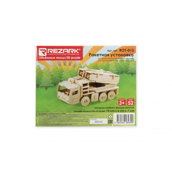 В каждый набор входит пошаговая инструкция на русском языке. Пазлы представляют собой небольшие сборные 3D модели из плоских фанерных деталей. Толщина фанеры — 3 мм.