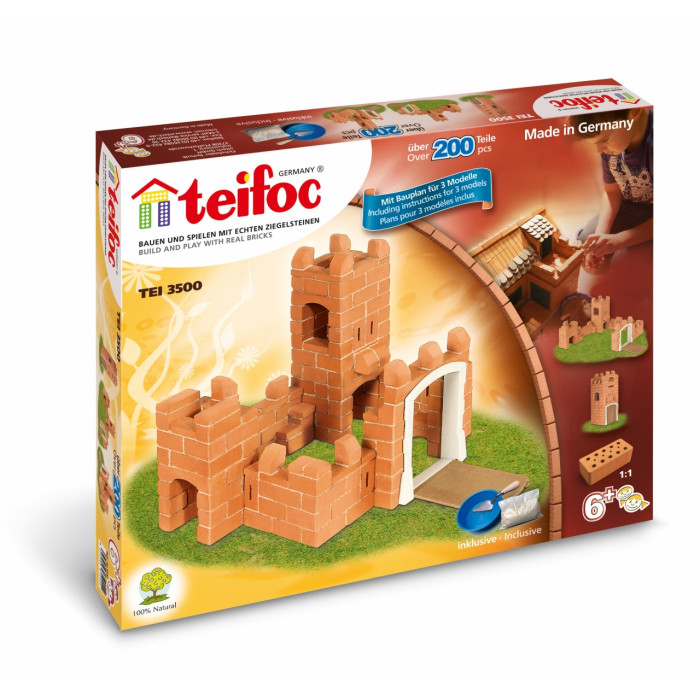 Teifoc — это уникальная система миниатюрного строительства. Ребенок возведет прочные здания, ворота и мосты с помощью настоящих многоразовых кирпичиков и строительного раствора.