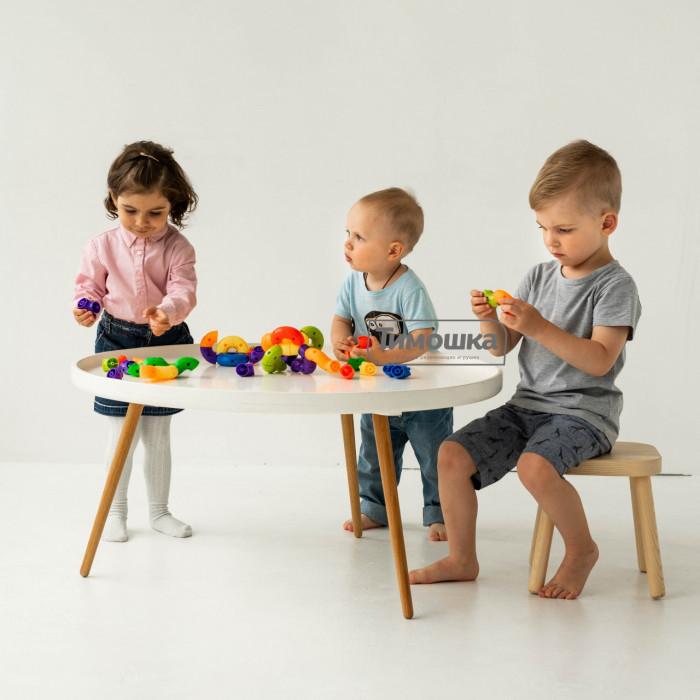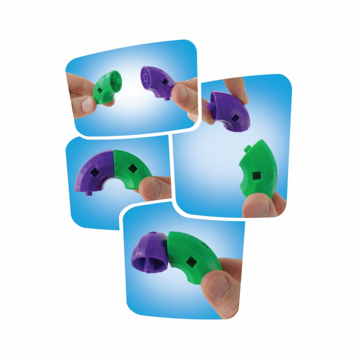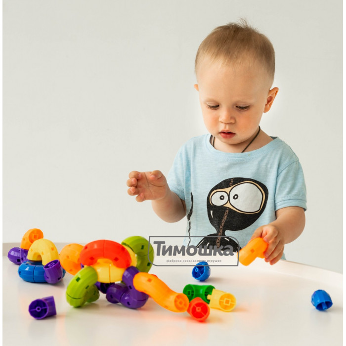 Детали легко скрепляются между собой, создавая новые фигуры, которые легко изменить и вот ровное колечко превращается в веселую волну, а из него становится забавной змейкой. Еще несколько деталей и это уже самолет или верный пес. Все эти функции помогают в развитии первых фантазий и творческих возможностей.
