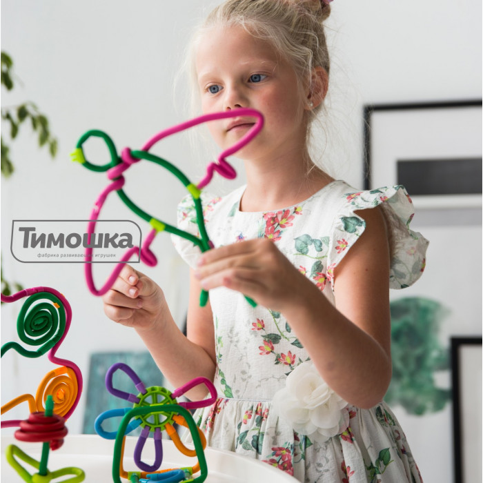 Гнущиеся детали конструктора легко соединяются между собой специальными крепежами, что создает неограниченный простор для творчества. Учиться и познавать мир с "Флекстик" легко и весело!