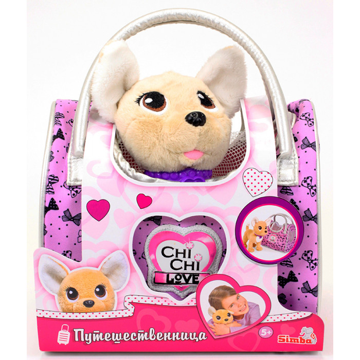 Путешествовать - это так увлекательно, а с лучшим другом - это увлекательно вдвойне! С ним можно разделись радость открытий, узнать много нового, а затем весело вспоминать все прожитые приключения. Плюшевой собачке ChiChiLove не терпится скорей отправиться в путь! Она идеально подходит для долгих прогулок. Путешествовать собачка любит в своей красивой сумочке с принтом в виде тысячи бантиков. Сумку можно использовать и как отдельный аксессуар.Чтобы не потеряться на собачке яркий ошейник с кулончиком в виде сердечка, где указано ее имя - ChiChiLove. Мягкая и пушистая ЧиЧиЛав станет любимицей своей хозяйки и с радостью разделит с ней все путешествия!