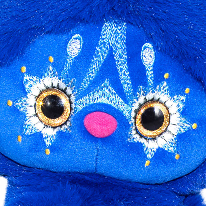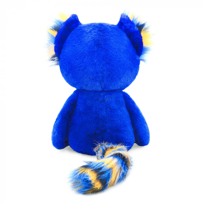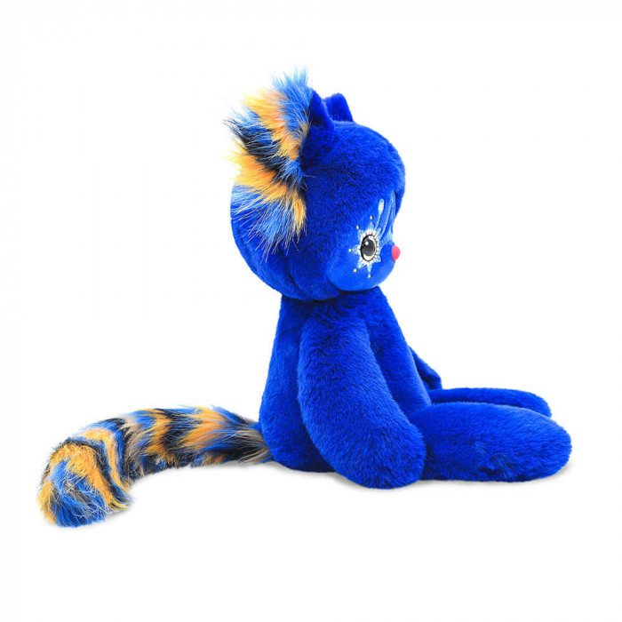 Ярко-синий — днем и темно-синий — ночью. Желтые полосочки на ушах и хвосте Тоши похожи на золотые солнечные лучи, а глаза-звездочки словно отражения далеких звезд. Когда Тоши, оттолкнувшись пушистыми лапами от самого высокого дерева, парит в воздухе, солнце, луна и звезды любуются им.