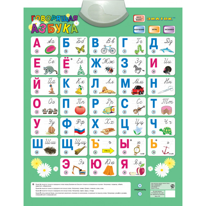 Электронный звуковой плакат ЗНАТОК PL-02-RU Говорящая азбука (обр. 2006г.) (4 режимные кнопки)