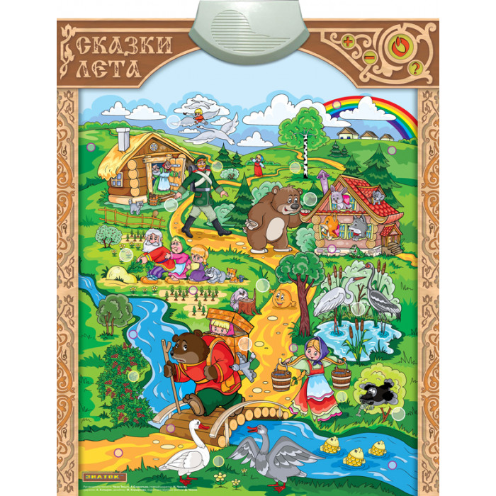 Нажимая на кнопки этого звукового плаката, дети могут услышать восемь русских народных сказок, послушать стихи и русские народные песни о лете.